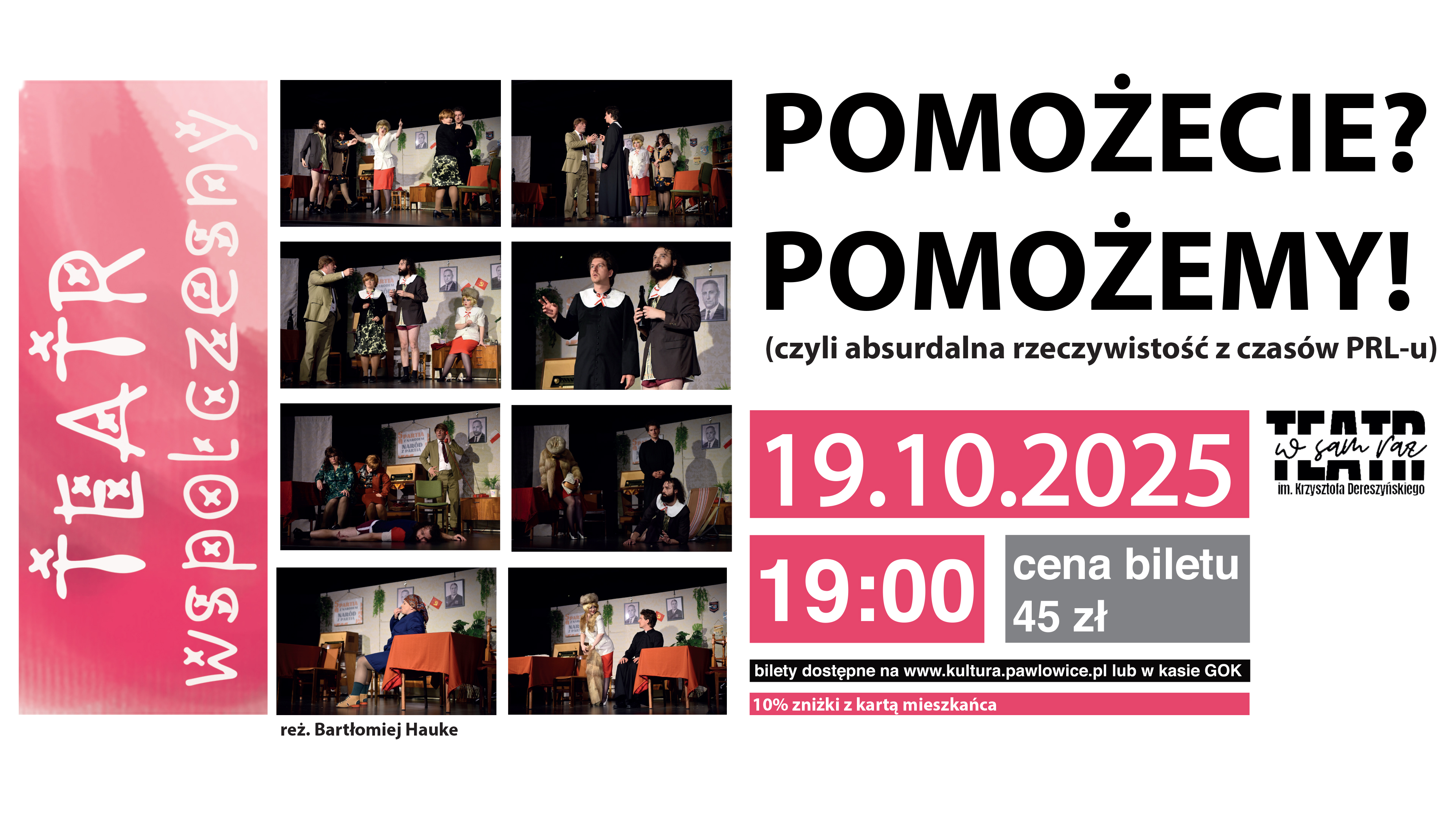 "Pomożecie? Pomożemy!" - to satyryczna refleksja nad mechanizmem władzy gdzie absurd, groteska i humor miesza się z goryczą szarej codziennej rzeczywistości mieszkańców wsi.