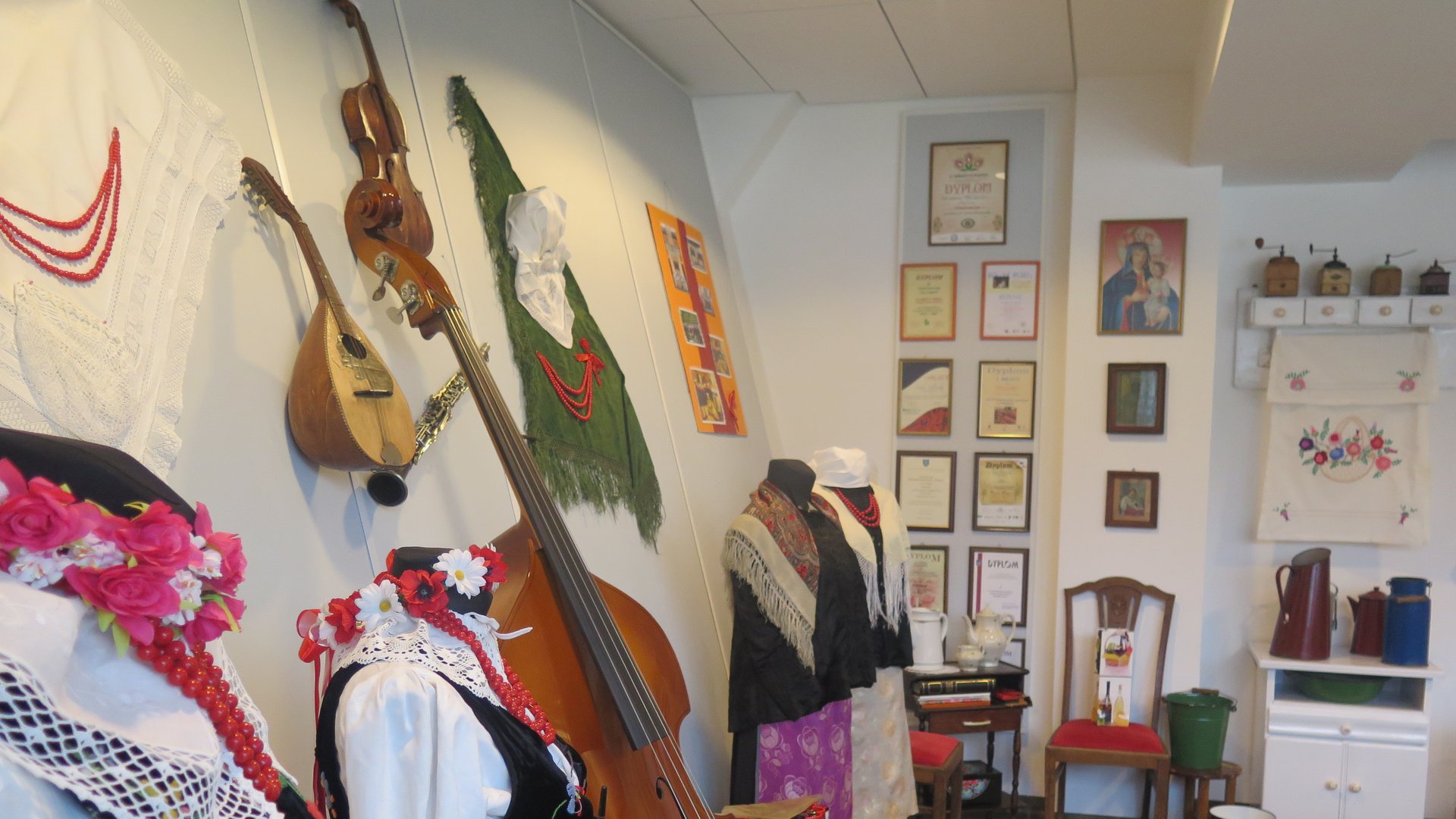 W pomieszczeniu, w którym dotychczas odbywały się przede wszystkim próby zespołu Talizman i Pawłowickich Babeczek oraz dopołudniowe spotkania z kulturą, znalazło się miejsce na wiejski kredens, żelazka z duszą, wyszywane makatki, drewniane i emaliowane naczynia, kołowrotek i wózek z lalką. Nie mogło też zabraknąć strojów regionalnych oraz górniczego munduru.