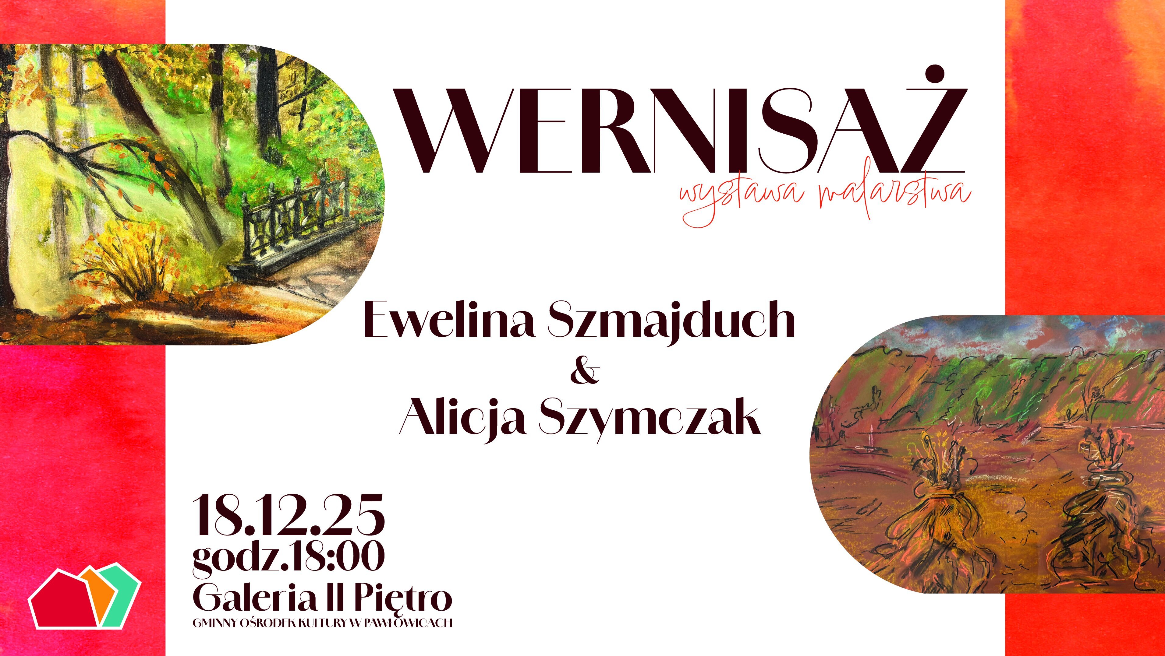 Zapraszamy na grudniowy wernisaż wystawy prac malarskich autorstwa Eweliny Szmajduch i Alicji Szymczak