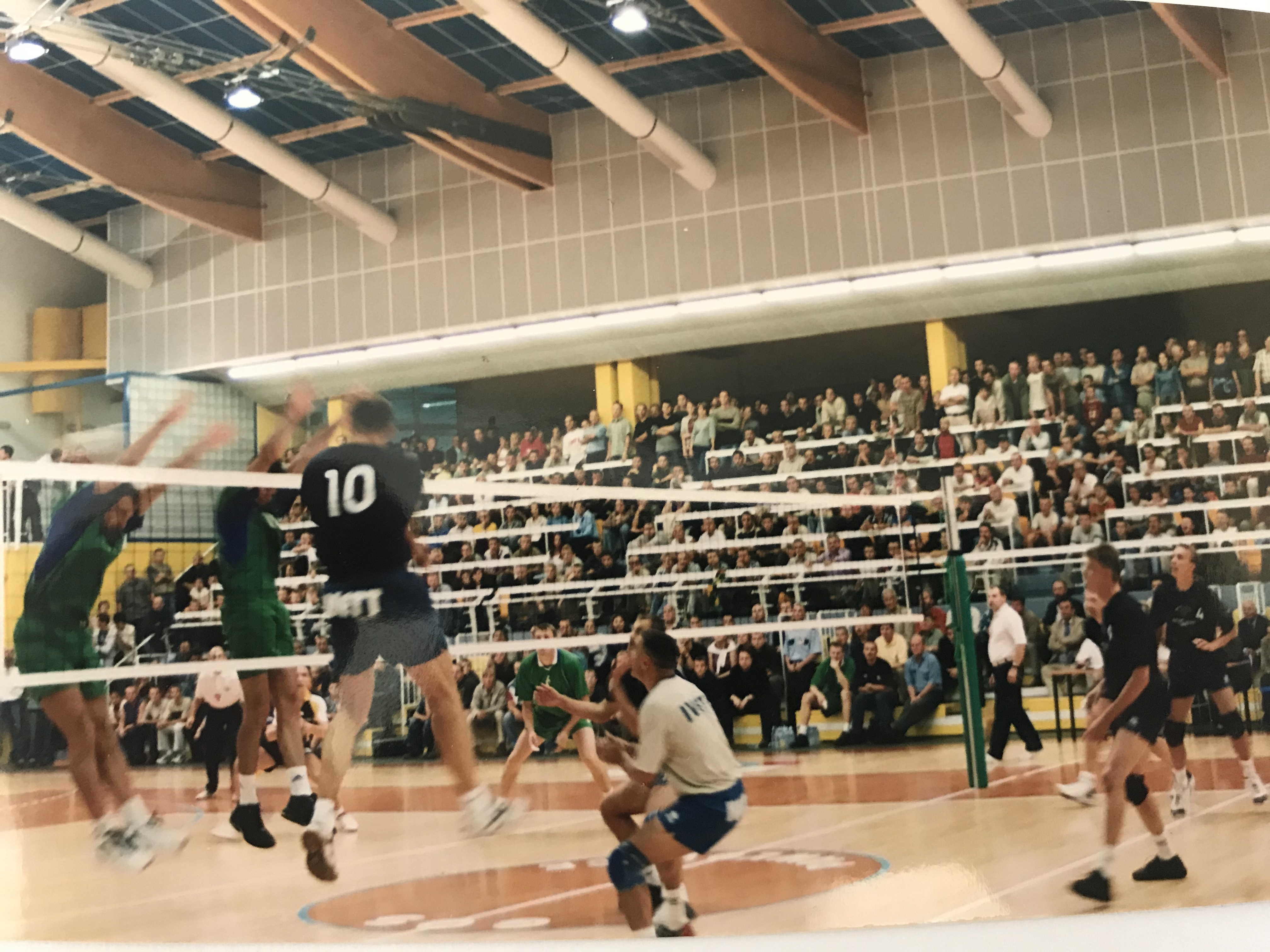 foto: Od lewej R. Szurkowski - kolarz, S. Głasek - Wiceprezes Zarządu MITEX-u oraz D. Dziekanowski - piłkarz" Ostatnią sportową atrakcją, która zakończyła uroczystość otwarcia hali był mecz towarzyski pomiędzy siatkarzami pomiędzy siatkarzami "IVETTE" Jastrzębie Borynia, a AZS Częstochowa. Przy wypełnionych po brzegi trybunach - co widać na zdjęciu - nasi sąsiedzi pokonali drużynę z Częstochowy 3:0(...)"
